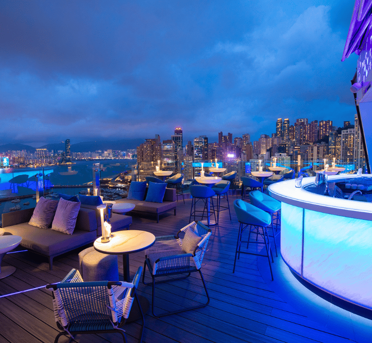 Nestled in the heart of Causeway Bay, Hong Kong, SKYE offers a chic rooftop bar and dining experience. Overlooking Victoria Park, this 27th-floor hotspot boasts sophisticated decor and a lively ambiance. Spanning 8,000 sq ft, enjoy cocktails on the spacious outside deck with an illuminated bar.